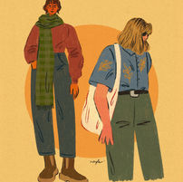 Nas minhas ilustrações, eu gosto de brincar com as proporções, então espere pernas mais longas, cabeças menores e aquele toque estilizado que é bem característico do meu trabalho.